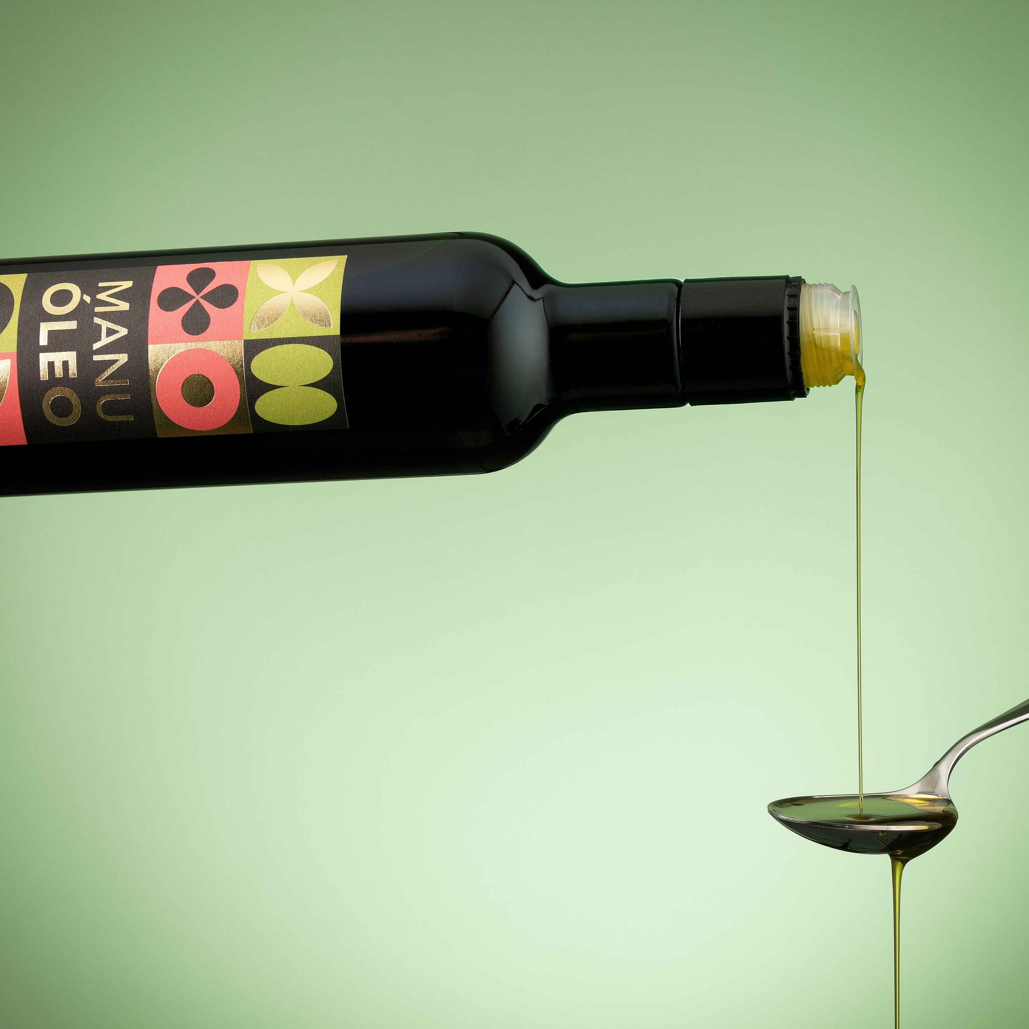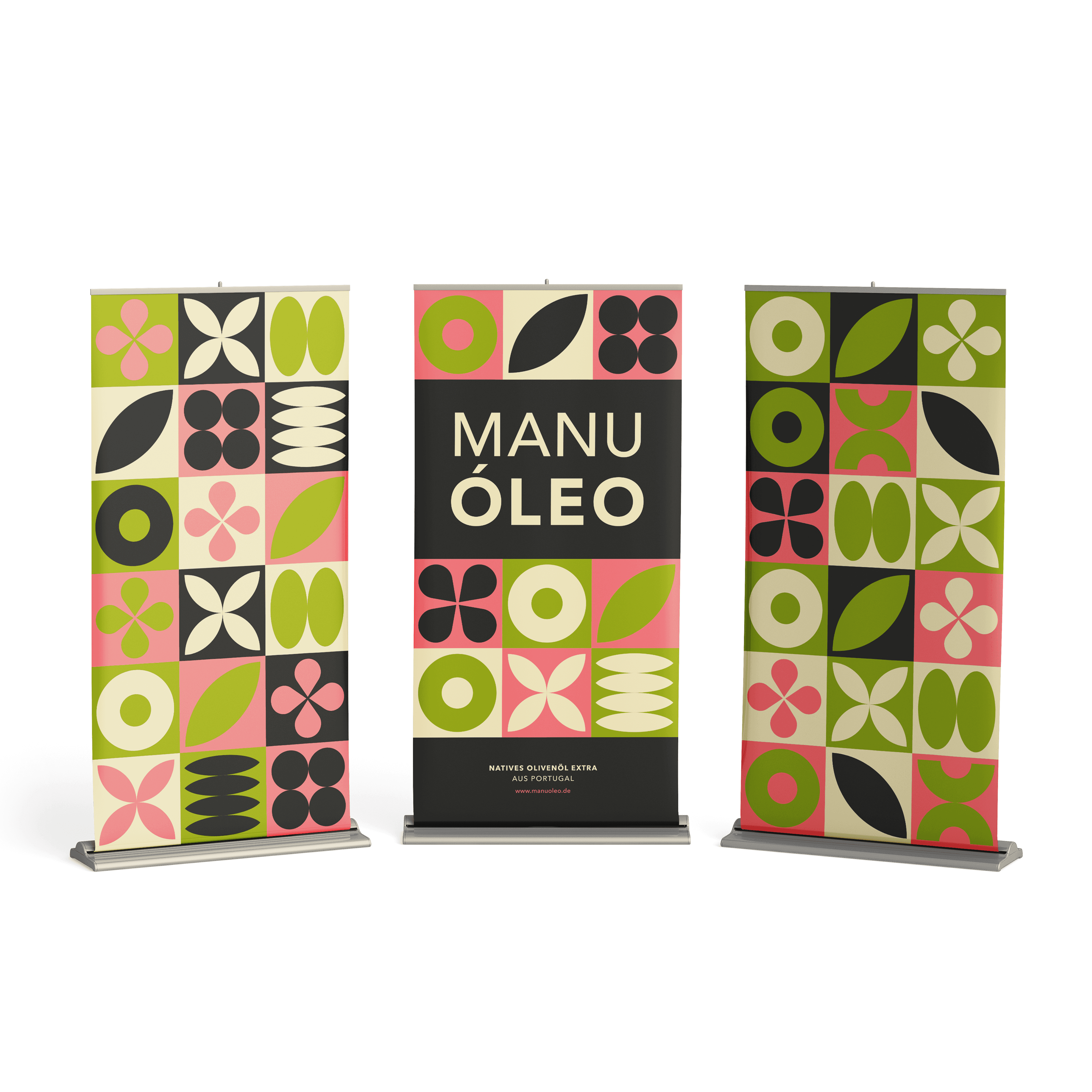 Manuoleo ist ein Kunde von studio polylog. Das Projekt entstand während meines Praktikums unter der künstlerischen Leitung von Prof. Christopher Ledwig. Ziel des Designs war es, dem kleinen Familienunternehmen einen modernen, hochwertigen Auftritt zu verleihen und es durch ein ungewöhnliches Design im Regal hervorstechen zu lassen. Das Etikett auf der Rückseite beschreibt die Olivenfelder von Trás os Montes von Antonio Manuel de Castro. Im Designprozess entstand ein Mustersystem, das eine moderne Übersetzung der Olive darstellt. Neben der Verpackung wurden eine Website und Werbematerialien erstellt.